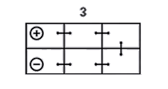 Для определения полярности грузовых аккумуляторов, если клеммы (токовыводы) расположены вдоль короткой стороны, нужно развернуть батарею этой стороной от себя. Тогда, если "+" справа - полярность "3" ("обратная" или "европейская" для грузовых автомобилей), а если слева – у аккумулятора полярность "4" ("прямая" или "российская" для грузовых автомобилей). Кроме того, могут встречаться грузовые аккумуляторы с полярностью "2" - клеммы у таких аккумуляторов расположены по диагонали, также существует полярность "9" (она же иногда обозначается цифрой "5") - в этом случае клеммы расположены посередине крышки аккумулятора.
